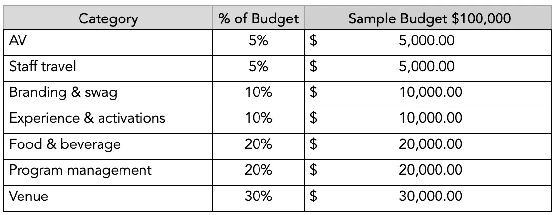 We always build in a 10% cushion for unexpected costs. It eases stress as the event nears, and when you don’t need it, you’ll come in under budget and look like a hero.